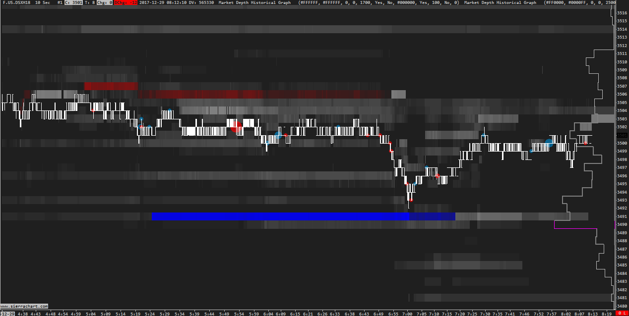 In regards to post #94, there is no chance of that. To improve performance of Market Depth Historical Graph, set it to not display the quantity text. Sierra Chart Support - Engineering Level Your definitive source for support. Other responses are from users. Try to keep your questions brief and to the point. Be aware of support policy: https://www.sierrachart.com/index.php?l=PostingInformation.php#GeneralInformation For the most reliable, advanced, and zero cost futures order routing, *change* to the Teton service: Sierra Chart Teton Futures Order Routing |