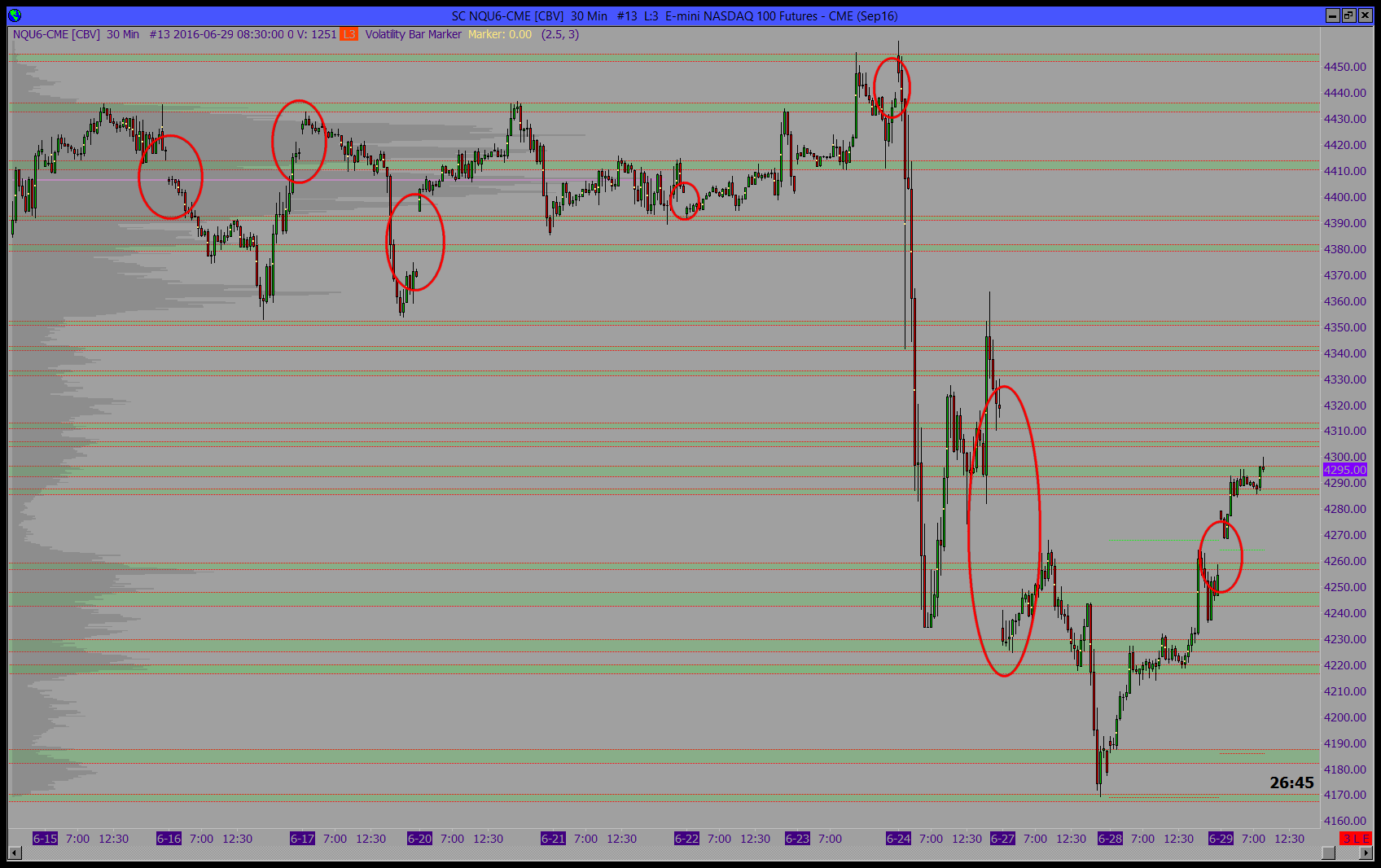 Every day the holes in the graph occur. They begin at the time when I switch off the Platform and the End at two o´clock of Central European Time. The upgrade to the actual version of Sierrachart 1434 didn´t help. This problem has started three weeks ago. My datafeed is Rithmic. You can see it in the picture.