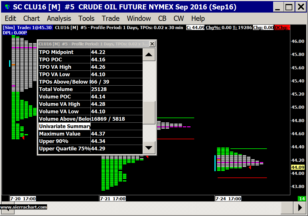 Why would you do the calculation on paper? For what purpose? What you are looking for is already calculated and available here: https://www.sierrachart.com/index.php?page=doc/doc_TPOVolProfileCharts.html#TextInformation We will include a new input in the TPO Profile Chart study named Ignore Singles in TPOs Above/Below POC. Sierra Chart Support - Engineering Level Your definitive source for support. Other responses are from users. Try to keep your questions brief and to the point. Be aware of support policy: https://www.sierrachart.com/index.php?l=PostingInformation.php#GeneralInformation For the most reliable, advanced, and zero cost futures order routing, *change* to the Teton service: Sierra Chart Teton Futures Order Routing |