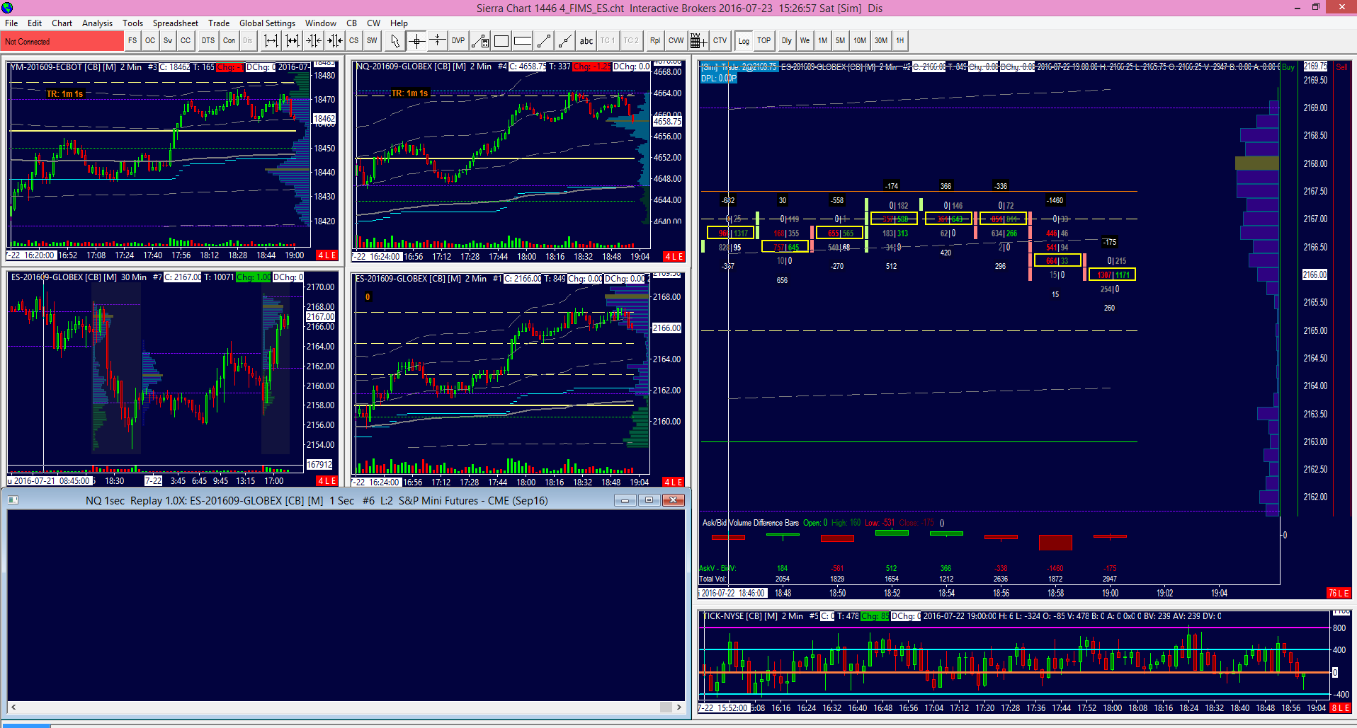 We simply encountered no problem testing your Chartbook. We replayed the #2 chart on 2016-07-20 and used For All Charts in Chartbook. The 1 second chart is replaying just fine: http://www.sierrachart.com/image.php?Image=1469354761724.png We did reduce the Days to Load in all of the charts to 10 but in the 1 second chart we increased it back to 120 and still no problem. We would not have expected to encounter a problem either. Try decreasing the Days to Load in all of your charts to 10 and do the replay again. It simply makes no sense that there would be a problem Sierra Chart Support - Engineering Level Your definitive source for support. Other responses are from users. Try to keep your questions brief and to the point. Be aware of support policy: https://www.sierrachart.com/index.php?l=PostingInformation.php#GeneralInformation For the most reliable, advanced, and zero cost futures order routing, *change* to the Teton service: Sierra Chart Teton Futures Order Routing Date Time Of Last Edit: 2016-07-24 10:09:05