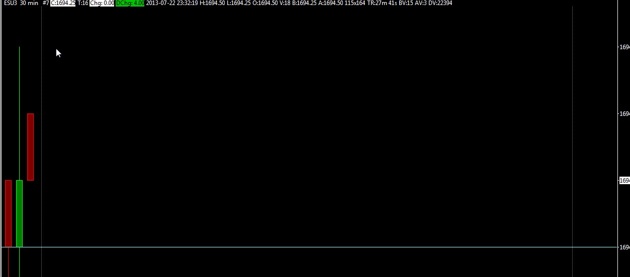 Hi, Since yesterday July 17, 2013, I am missing huge chunks of data on my charts. 1. The problem began yesterday. First, the price on the chart was lagging by about one point or 6 ticks.(S&P emini futures.) I quit and relaunched... then I realized there was a huge chunk of missing data on the charts. I tried everything listed on the Help Documentation to no avail. 2. I tried opening Sierra on another computer and have the same problem. I have attached a screenshot and log details. 3. Data feed is from OEC. No problem there. My Internet connection too is fine. Yet, the charts are a problem. Please help. Thanks ES |