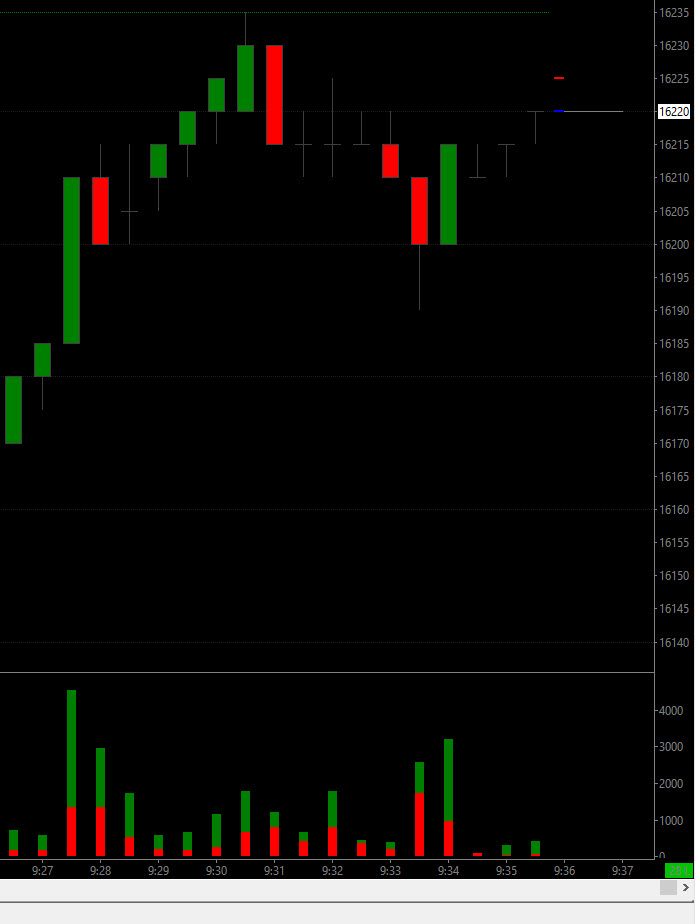 Thanks for your response and suggestion. It's not quite what I am after. I am keen to see the total volume bar and then the bid and ask volume which made that bar up. Like what you have except the bid and ask is staked in each other. For example 200 contracts trade in a volume bar of which 50 were at the bid (red) and 150 were at the ask (green) and the total height is 200. With your suggestion the 50 would sit behind the 150 and the height would only be 150 making is harder to compare to other volume bars of volume traded at time as you compare the maximum of what traded at bid or ask rather than the total. |