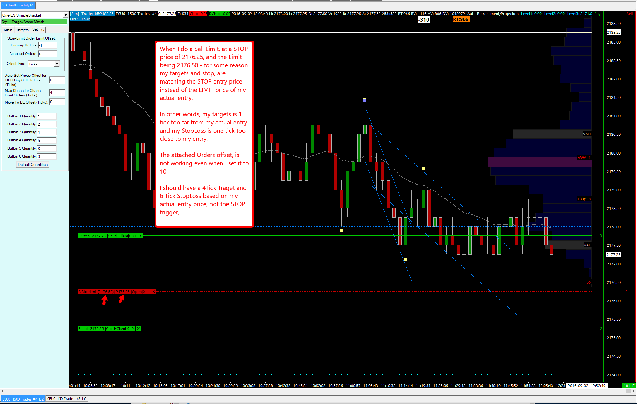 The question is within the image. My Attache orders are using the the STOP Trigger price, not the LIMIT/Entry price, which is a 1 tick improvement. I cannot get the attached orders to adjust based on my ENTRY price. _Dion |