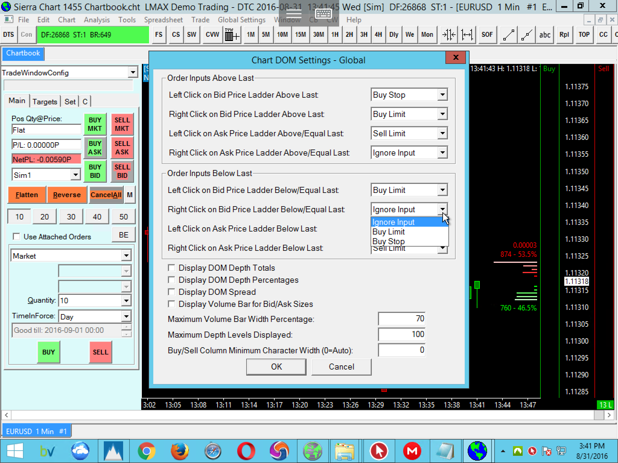 This is already supported. Refer to step 6 here: https://www.sierrachart.com/index.php?page=doc/ChartTrading.html#ChartDOM Sierra Chart Support - Engineering Level Your definitive source for support. Other responses are from users. Try to keep your questions brief and to the point. Be aware of support policy: https://www.sierrachart.com/index.php?l=PostingInformation.php#GeneralInformation For the most reliable, advanced, and zero cost futures order routing, *change* to the Teton service: Sierra Chart Teton Futures Order Routing |