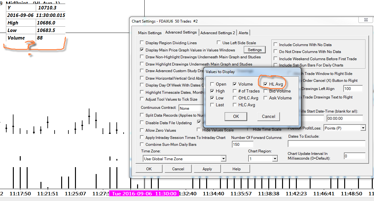 The Compact Tool Values Window does not display the bar average values. You need to use the Tool Values Window: http://www.sierrachart.com/index.php?page=doc/Tools.html#ViewingToolandChartData And that can be customized as explained here: http://www.sierrachart.com/index.php?page=doc/helpdetails67.html Sierra Chart Support - Engineering Level Your definitive source for support. Other responses are from users. Try to keep your questions brief and to the point. Be aware of support policy: https://www.sierrachart.com/index.php?l=PostingInformation.php#GeneralInformation For the most reliable, advanced, and zero cost futures order routing, *change* to the Teton service: Sierra Chart Teton Futures Order Routing |