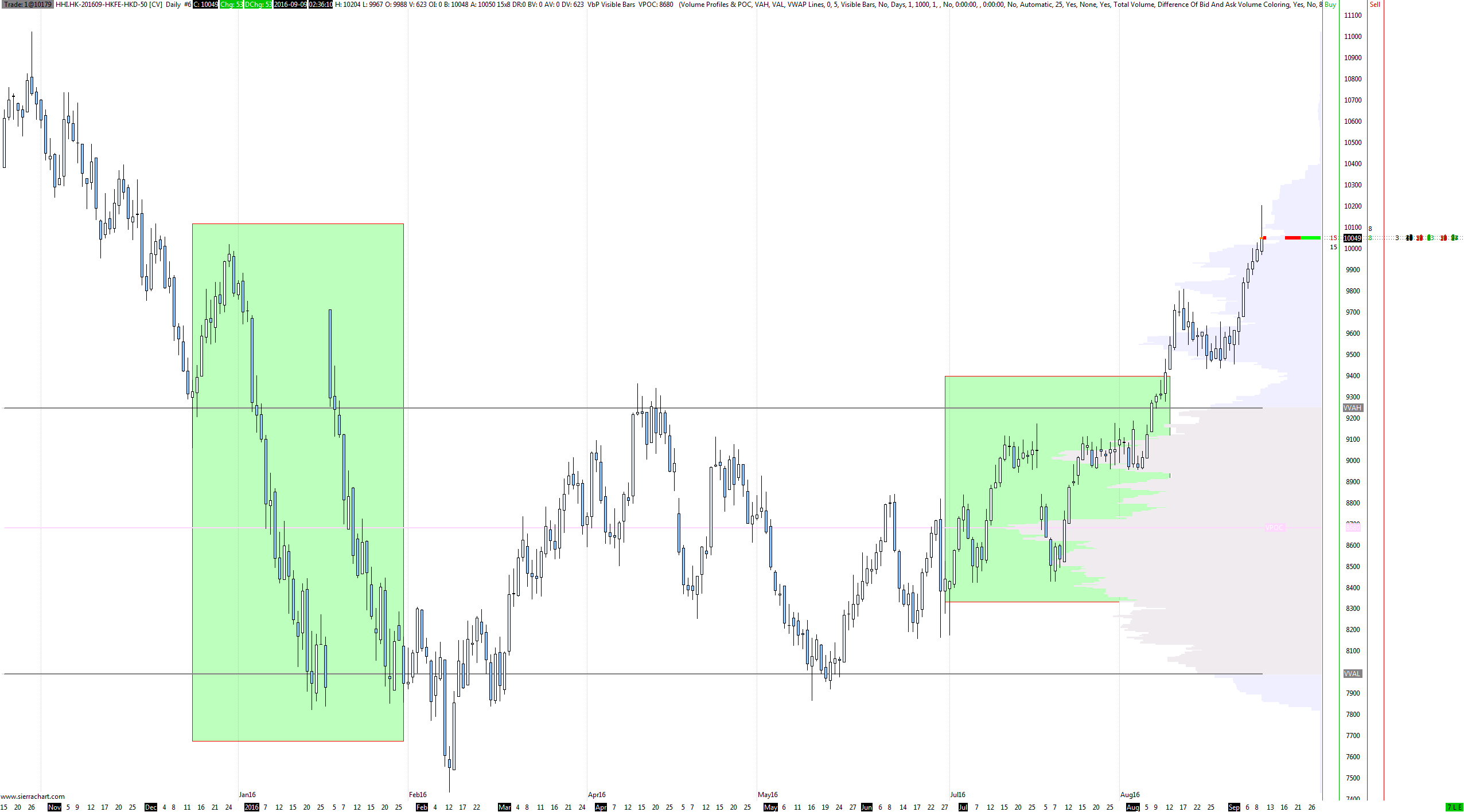 Okay well no rollover rules on your side is a problem in it's own right, but I'm using the exchange defined rules: Number of business days before last business day of contract month: 1 (method11) Regardless of the rollover rule being used, why is time resetting or going backwards in any situation? It's like the rollover engine is being confused by the fact that volume goes back and forth between the contracts. Aside from that if you look at the chart and you see that both August and July have twice the width of any of the other months (and their days reset in the middle) and other months have scenarios where a contract rollover didn't even occur (e.g. May/Jun/July), it's clear there's something going on. This is not a hard to handle contract, it rolls monthly and on a very specific timeline. https://www.hkex.com.hk/eng/prod/drprod/hkifo/fut.htm https://www.hkex.com.hk/eng/prod/drprod/hshares/hhifut.htm https://www.hkex.com.hk/eng/prod/drprod/mhsifo/minif.htm https://www.hkex.com.hk/eng/prod/drprod/mchfut/mchfut.htm Considering SC just started offering real time data on this exchange we probably want to be making sure the contracts rollover correctly. Date Time Of Last Edit: 2016-09-09 22:07:14