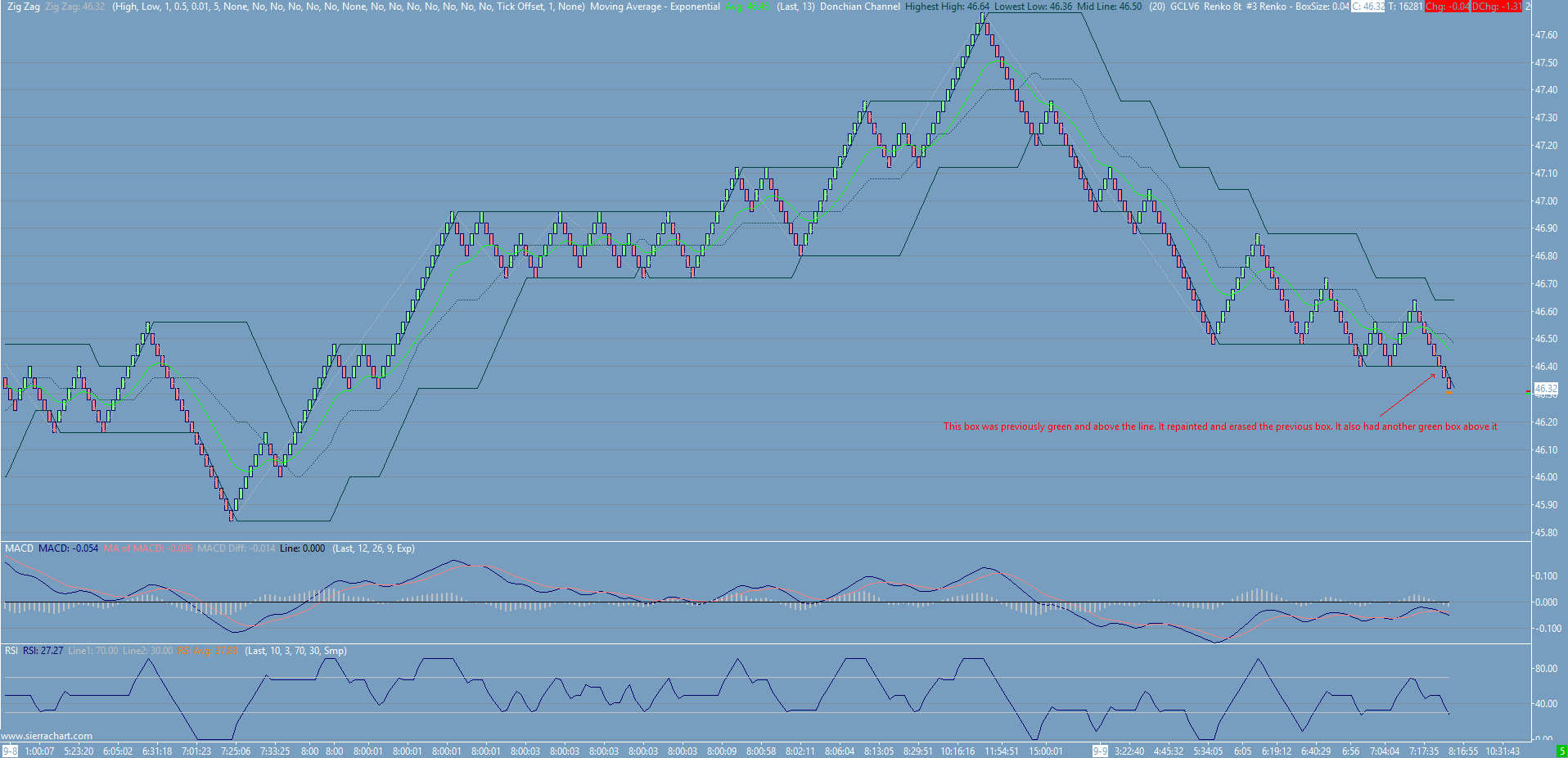 Do not use any of the Renko studies. Remove those from the charts. Follow the instructions here instead: http://www.sierrachart.com/index.php?page=doc/RenkoCharts.html Sierra Chart Support - Engineering Level Your definitive source for support. Other responses are from users. Try to keep your questions brief and to the point. Be aware of support policy: https://www.sierrachart.com/index.php?l=PostingInformation.php#GeneralInformation For the most reliable, advanced, and zero cost futures order routing, *change* to the Teton service: Sierra Chart Teton Futures Order Routing |