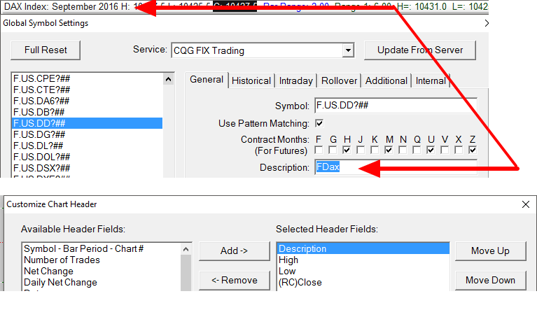 I used the "Description" field first but the result was different. I changed the field in "FDax" but the Chart Header says: Dax Index September 2016 H". Is it possible to change the "Description" field in "FDax"? |