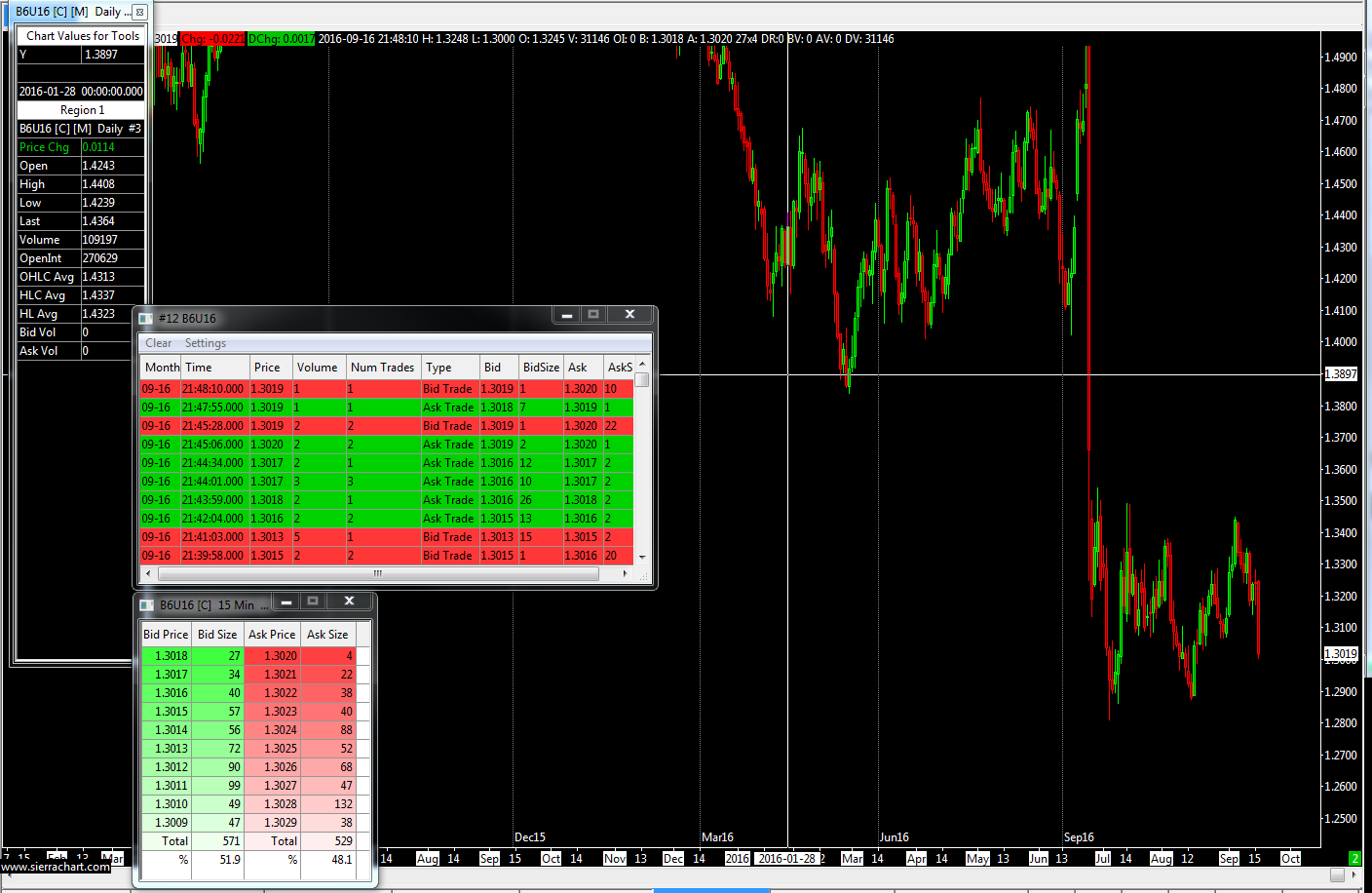 Yes that is the September contract but the trading is now active in the December contract for the B6 futures. So you need to change the symbol of the chart to the December futures contract. Sierra Chart Support - Engineering Level Your definitive source for support. Other responses are from users. Try to keep your questions brief and to the point. Be aware of support policy: https://www.sierrachart.com/index.php?l=PostingInformation.php#GeneralInformation For the most reliable, advanced, and zero cost futures order routing, *change* to the Teton service: Sierra Chart Teton Futures Order Routing |