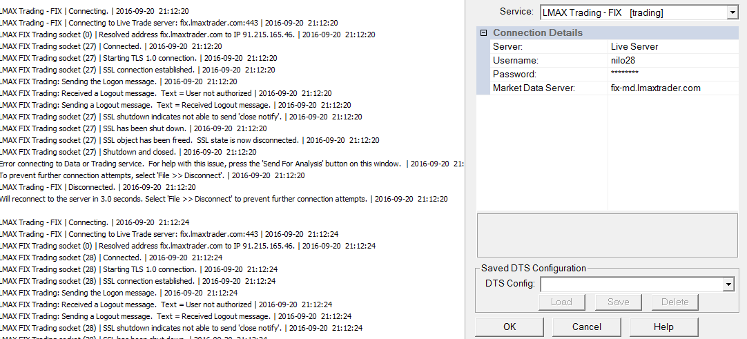 You did not follow our instructions. Follow the instructions given in the Account Support ticket here: https://www.sierrachart.com/usercp.php?page=SupportTickets&Ticket=1474375036208#ViewTicket The service needs to be "LMAX Live Trading - DTC". Sierra Chart Support - Engineering Level Your definitive source for support. Other responses are from users. Try to keep your questions brief and to the point. Be aware of support policy: https://www.sierrachart.com/index.php?l=PostingInformation.php#GeneralInformation For the most reliable, advanced, and zero cost futures order routing, *change* to the Teton service: Sierra Chart Teton Futures Order Routing |