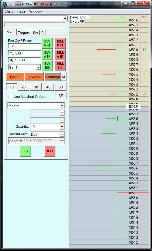 You need to add the Bid Size/Quantity column. Refer to: http://www.sierrachart.com/index.php?page=doc/ChartTrading.html#CustomizeChartDOMColumns Sierra Chart Support - Engineering Level Your definitive source for support. Other responses are from users. Try to keep your questions brief and to the point. Be aware of support policy: https://www.sierrachart.com/index.php?l=PostingInformation.php#GeneralInformation For the most reliable, advanced, and zero cost futures order routing, *change* to the Teton service: Sierra Chart Teton Futures Order Routing |