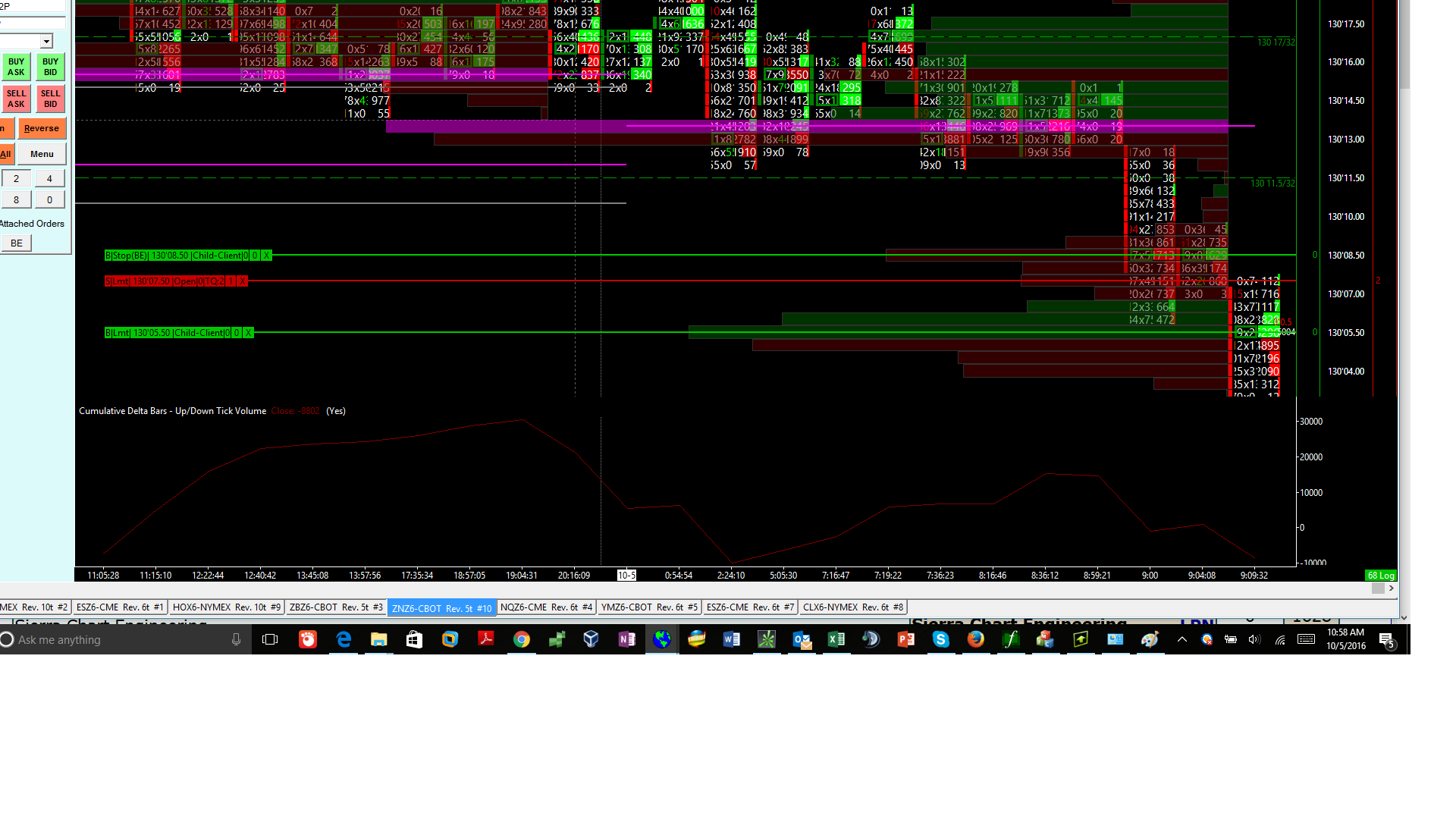 I have 3 questions 1) Is there a way to set the Number bar columns to a default width? 2) Is it possible to pan vertically 3) is it possible to set spacing between the edges of the chart attached is a view of my chart where I cant see whats going on at the bottom of the chart also this happens when price gets to the top where I want to manually move my stop or target and cant get to it because I cant move vertical. ****updated**** I found how to pan vertically search for : Interactive Scaling, right click the price are select Interactive Scaling now on the price column you can move up or down dynamically Date Time Of Last Edit: 2016-10-05 15:16:41