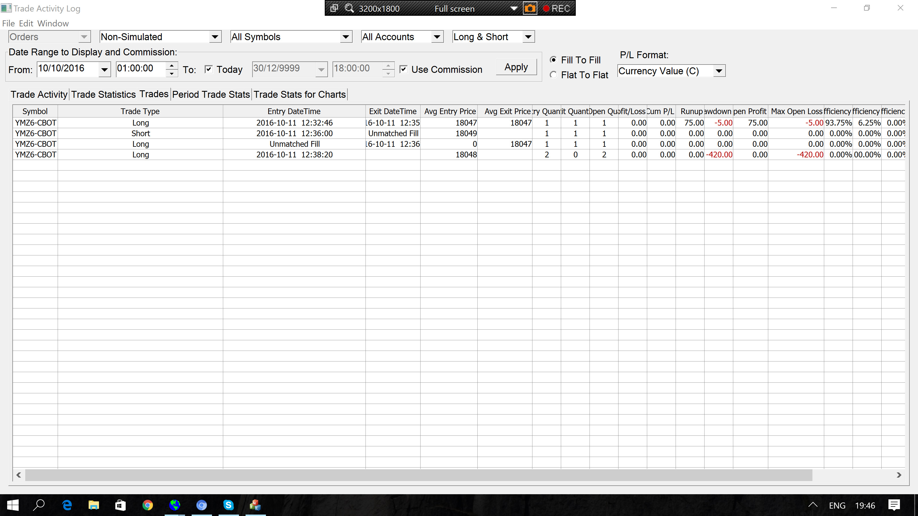 Refer to this section here about Unmatched Fills: https://www.sierrachart.com/index.php?page=doc/TradeActivityLog.php#TradesTabUnmatchedFill And also refer to this section about the Trade Stats for Charts tab: https://www.sierrachart.com/index.php?page=doc/TradeActivityLog.php#ChartTradeStatsTab When you want to know the actual Trade Position for a Symbol and Trade Account, only look at the Positions tab: Trading Information Windows: Trade Positions Window Sierra Chart Support - Engineering Level Your definitive source for support. Other responses are from users. Try to keep your questions brief and to the point. Be aware of support policy: https://www.sierrachart.com/index.php?l=PostingInformation.php#GeneralInformation For the most reliable, advanced, and zero cost futures order routing, *change* to the Teton service: Sierra Chart Teton Futures Order Routing Date Time Of Last Edit: 2016-10-11 19:13:21