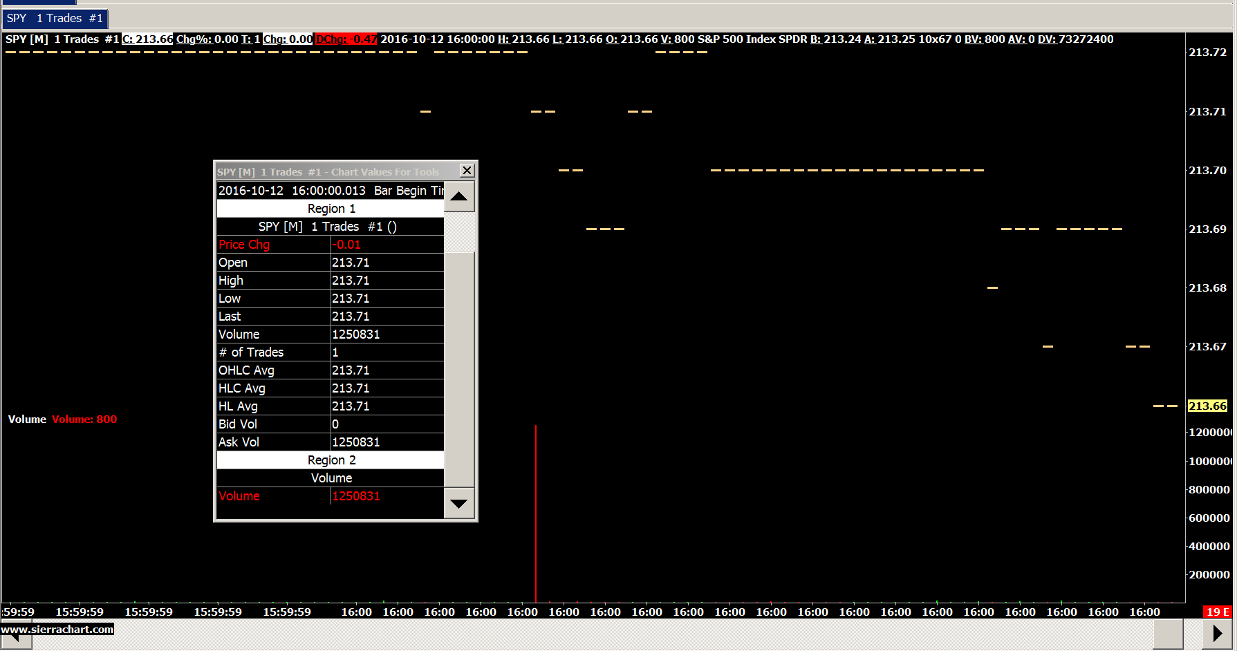 I have been having some SPY real-time bid/ask issues on a Numbers chart that didn't "make sense." Today I compared IQFeed data for SPY with SierraChart Real-time data. Attached are 4 charts showing the difference. I'm suspicious that the IQ Feed version is correct, but I don't know how to prove it. I'm not even sure you would care. But here is info, FWIW. All of this revolves around a huge "adjustment" trade at 1600 today (which happens every day). I've attached 6 snips to document this. Note in IQ1S (IQ Feed 1-second) and SC1S (SierraChart 1-second), OHLCV are identical, but note that Bid and Ask are approximately reversed. Note IQ1T (1-trade) has a single trade with volume of 1,250,831. Note how that trade is "spread out" in SC1T. Note that IQ1M_Numbers (1-minute) shows a very different VolumeAtPrice picture than SC1M_Numbers. By the way, I know the huge trade at 1600 every day may not be "important." But what led me to this was some significant VaP differences at 9:30 to 10:00 yesterday when we had a high-volume down market. Those are much harder to document. Both have DTS set to 1-Tick storage. I deleted the SC SPY.scid file and re-downloaded to be sure that wasn't the issue. Windows 10, SC1471 Thank you, Dale Date Time Of Last Edit: 2016-10-12 20:56:58