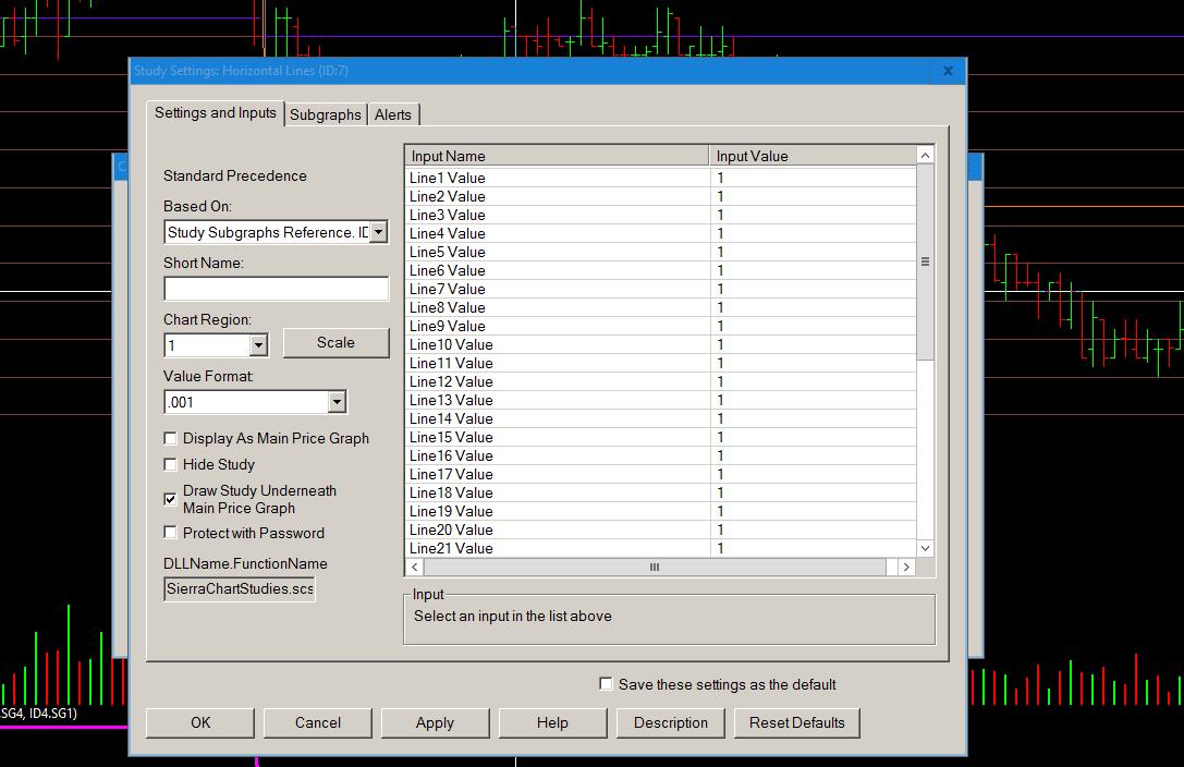 Hi, Here is a snapshot of my settings on the Study Subgraph Reference and Horizontal Lines. I have gone through your instructions multiple times and just cant seem to make any headway. Comments appreciated, Cj |