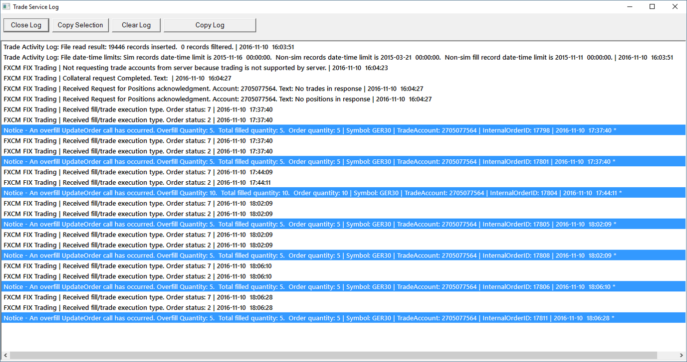 Notice - An overfill UpdateOrder call has occurred. InternalOrderID: 1718, Overfill Quantity: 10,