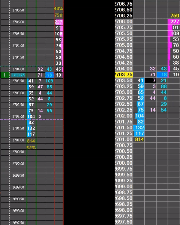 John, the ability to highlight inside bid/ask has been there before, I don't know why you guys created another same function. It would be nice is to have the ability to highlight the inside bid or ask that is trading at one color while the other inside bid or ask that is not being traded another color; if that make any sense. Also it would be nice to have the ability to move the volume profile on the DOM to the right, and to save real estate on the volume bar, have the VPOC(highest volume bar) take 100 percent of the real estate, and have the other adjust to the vpoc. That will enable the volume bar to be more distinct from one another. Thank You.