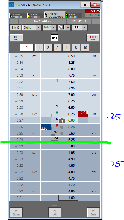 Yes, if I disable "Auto set from data feed' and change it to .25 tick increment that works for options well above 5.00 but it doesn't change the fact that ES options are priced in .05 increments under 5.00 and .25 increments above. so as the options strike moves above and below the magic 5.00 number if becomes very difficult to trade with a fixed .25 tick increment. These are not exotic options, they are probably the most liquid futures options available