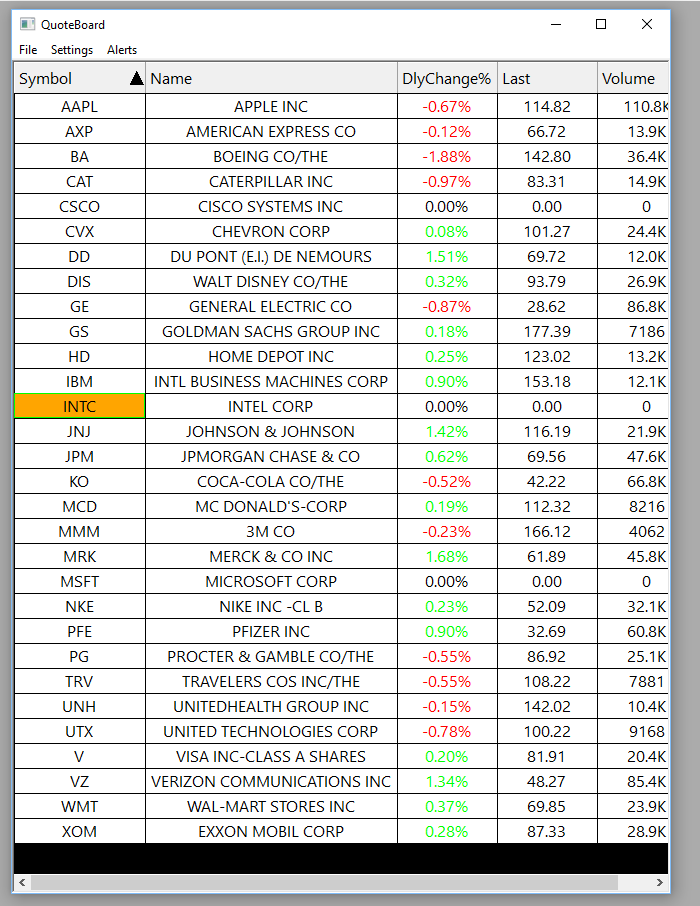 Hi, I'm building a watch list with the Dow Jones Stocks and I have 3 stocks Sierra will not recognize CSCO Cisco System Inc. INTC Intel Corp. MSFT Microsoft Corp. all the other stocks come up OK and if I open up a chart with those symbols it comes up but with the incorrect numbers it shows the right numbers on my IB account which is linked to Sierra, please help, thanks Walter |