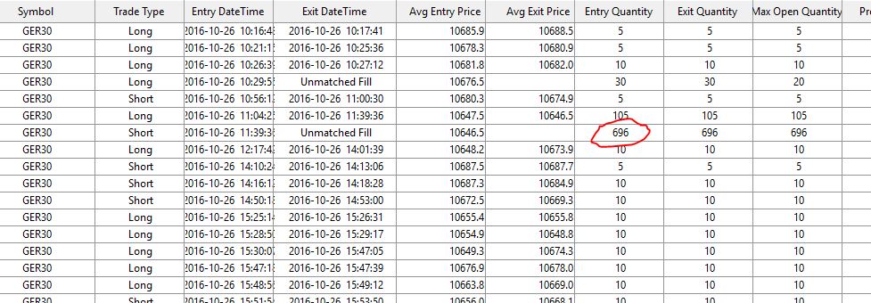 Order 2016-10-26 09:39:35.717 GER30 Order from DTC client #6. Sierra Chart. 84.149.102.188 2424 Market 800 Sell Order Sent 01051975 Close 800 However, we think probably this was because you were seeing a Trade Position of 800 that you wanted to flatten and you thought should not have been there. That Position may very well have been a mistake. Over the last 24 hours we have been doing work on our FXCM FIX demo connection with the processing of Position reports, which at times could have led to incorrect Positions and incorrect order fills. The work is now complete and you should no longer see a problem going forward from this point in time. So understand that the problems were due to the work that we were doing. Sierra Chart Support - Engineering Level Your definitive source for support. Other responses are from users. Try to keep your questions brief and to the point. Be aware of support policy: https://www.sierrachart.com/index.php?l=PostingInformation.php#GeneralInformation For the most reliable, advanced, and zero cost futures order routing, *change* to the Teton service: Sierra Chart Teton Futures Order Routing Date Time Of Last Edit: 2016-10-27 05:36:40