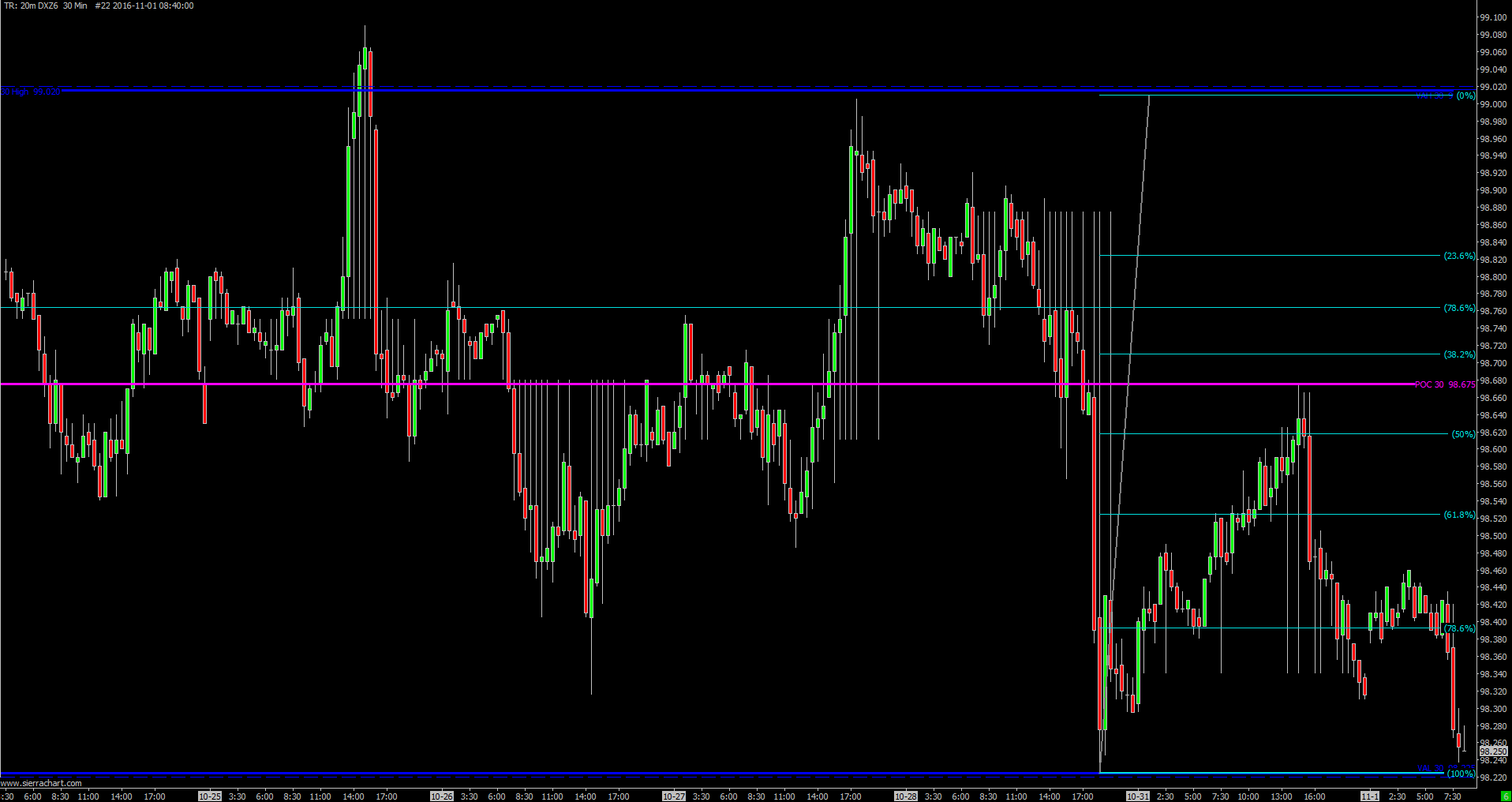 Since 25th Oct I have seen a lot of spikes on intraday charts for ICE contracts DXZ6, CCZ6 & SBH7. The attached chart for DXH7 is the worst case. SC Version 1473, data TransAct. Have tried delete all & download but does no rectify. CME and Eurex charts are printing as expected. Please advise http://www.sierrachart.com/image.php?Image=1477989607615.png |