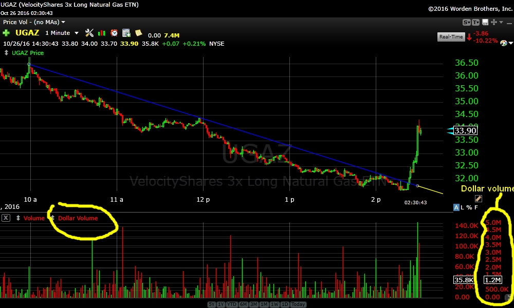 No, what I would like is Volume multiply by Price for instance, if I am looking a stock like AAPL or CHK on 1 minute chart period let say volume is around 100k/minute and the price is trading at 5$. so the indicator will show 500k$/minute how can I get that with sierrachart like the attached picture? thank you Date Time Of Last Edit: 2016-11-08 04:02:07