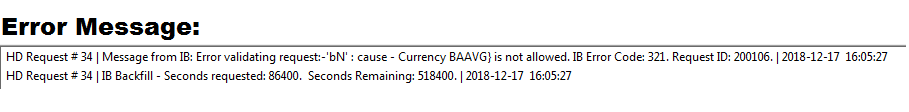 Sorry, I don't trade ES but was just using that as an example, I'm not familiar with its contract months. So I entered the IB format and it works without adding BAAVG. But when I add BAAVG I get an error message (see screenshot), obviously because IB doesn't recognize the BAAVG suffix. Any way to fix this? This Works: {CL-201901-NYMEX}-{CL-201902-NYMEX} This Doesn't: {CL-201901-NYMEX-BAAVG}-{CL-201902-NYMEX-BAAVG} |