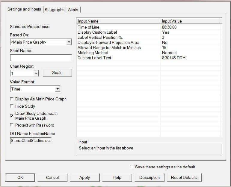 Using the same settings you have showed, we see the Time Line displayed on a chart for the same symbol and same bar period: http://www.sierrachart.com/image.php?Image=1479840502513.png Sierra Chart Support - Engineering Level Your definitive source for support. Other responses are from users. Try to keep your questions brief and to the point. Be aware of support policy: https://www.sierrachart.com/index.php?l=PostingInformation.php#GeneralInformation For the most reliable, advanced, and zero cost futures order routing, *change* to the Teton service: Sierra Chart Teton Futures Order Routing Date Time Of Last Edit: 2016-11-22 18:49:44