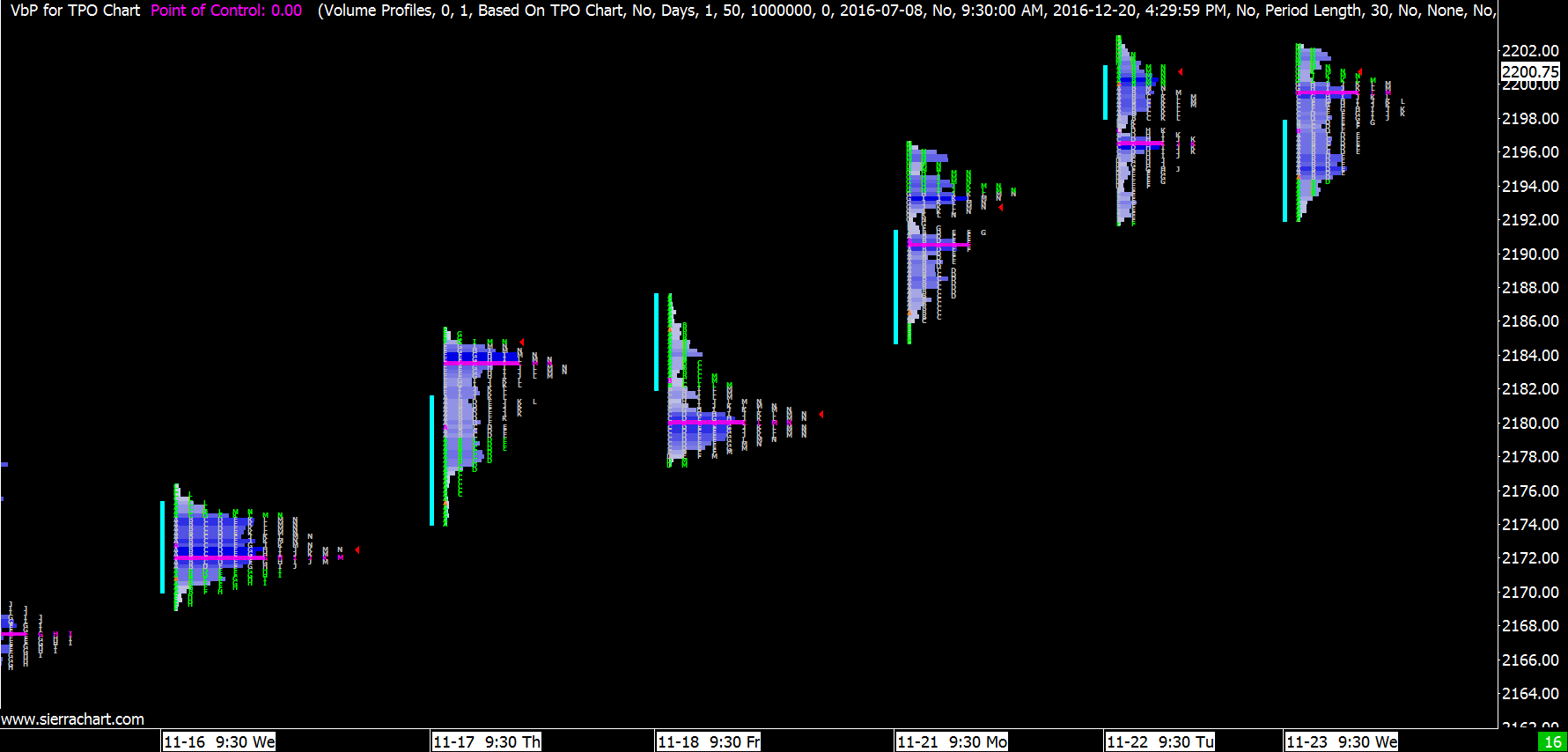 OK we finally found the chart. We reset the scale with Chart >> Reset Scales because at the time we looked at it, we could not see anything. This is what we see: http://www.sierrachart.com/image.php?Image=1479935806815.png We recommend re-downloading the data in the chart in case there is missing volume data which would seem unusual though. Re-download the data with Edit >> Delete All Data and Download. Sierra Chart Support - Engineering Level Your definitive source for support. Other responses are from users. Try to keep your questions brief and to the point. Be aware of support policy: https://www.sierrachart.com/index.php?l=PostingInformation.php#GeneralInformation For the most reliable, advanced, and zero cost futures order routing, *change* to the Teton service: Sierra Chart Teton Futures Order Routing |