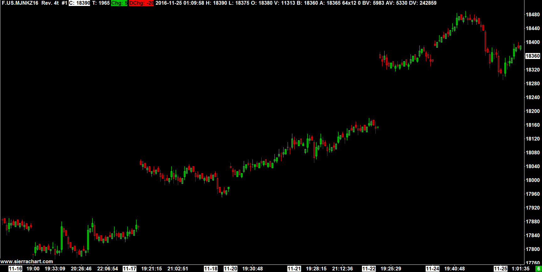 As I have never traded MJNK I'll be experimenting for a week or so but if it trades like ES I suspect I'll end up using reversal bars of three or four ticks as I now do with ES. I understand that MJNK is the Asia's most heavily traded instrument so I could end up with a preference for five tick reversal bars but I doubt it. Do you list MJNK as an intraday chart reversal chart?