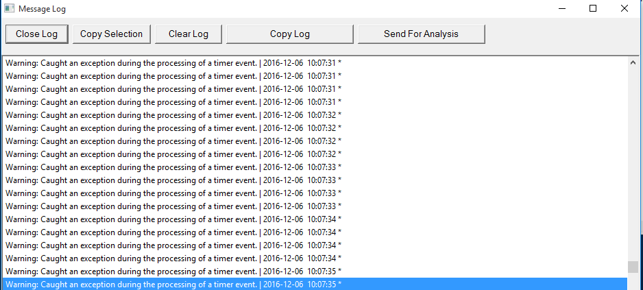 I'm running v.1493 and since the update my charts are all "hanging" when I change instruments from the quote board even with a manual refresh. (ALT R) Below is what is displaying in the Message Box. Anybody else having this issue or your thoughts for remedy?