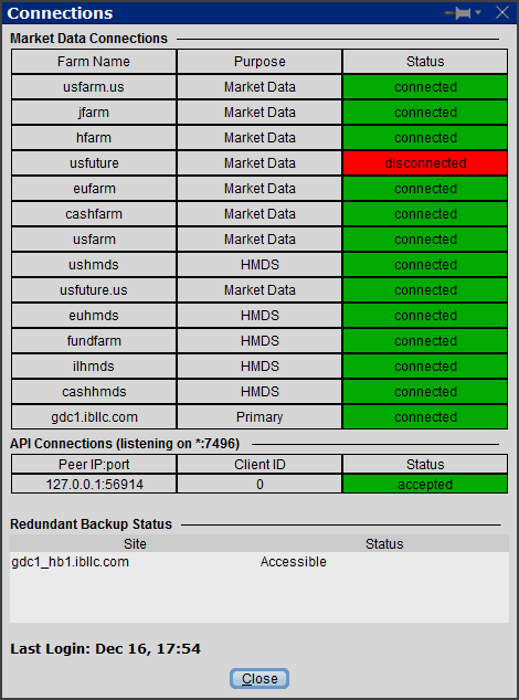 Hi User94740, thanks for your response. I am very certain I did not click on the flatten button because it does not make sense at all for me to open a new position right after I got stopped out. In fact, the live trade was a mistake to begin with - I was in a self-imposed weekly stop and did not do any live trades during the week. My PC rebooted overnight due to Windows update and somehow the latest chartbook setting was not saved. As a result, when I re-opened SC it was the previously saved setting and it was set to live trading instead of sim trading. Unknown to me and of course this is my fault for not checking before trading, I entered the 2 contracts live instead of sim but its a good thing I always have attached OCO orders with the trade so I got stopped out at a small loss. So what turned out to be a mistake on my part ended up being a very expensive mistake discovered by me a few days later with this issue now. I am curious why would a faster internet connection fix the issue. I am currently on a 30mbps fixed line and to send data to the broker and back etc does not take much bandwidth. I am however limited by latency as I am located in South East Asia so my latency to IB is very poor typically >200ms vs 10-50ms for those of you located in the US. What I have observe though is that my connection with IB is very unstable, depending on the day and time I observe 5-10 disconnections with IB in a period of 30mins - screenshot of connection with IB at around 8.50pm UTC+8 time - and it kept disconnecting and reconnecting arbitrarily. I am very frustrated with the situation, I do not know if this lag in connection issue is causing this or not but SC is adamant that issue lies with me clicking on flatten manually. Could you tell me more about your case and what was SC's response to it? Surely if it was not your fault and a trade was initiated without you knowing then there must be a bug with the platform? If so, how come you and me are affected but not the majority else? Thanks. |