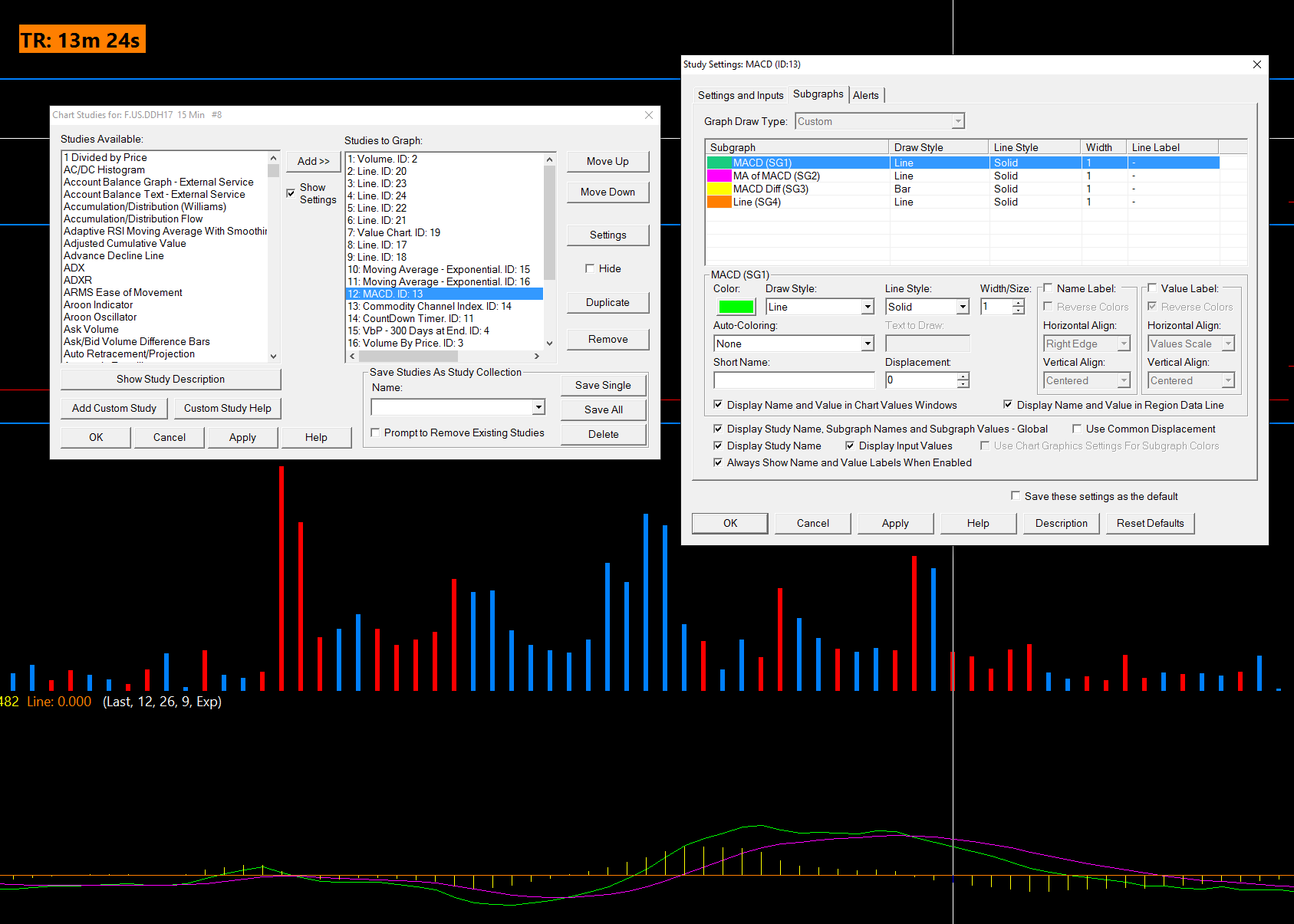 I would like to understand which code I need for setting an alert on a graph relative to the cross of the MACD curve with the signal curve as it does not work: CROSSOVER(ID13.SG1.ID13.SG2) The MACD has the ID13. Please check attached visual file. I have copied the code illustrated on this youtube video from Infinity: https://www.youtube.com/watch?v=-Edzq9v-8a0&t=2449s (minutes 42) I would be nice to make some video with several examples (crossing CCI levels, MACD0 with signal, Stochastics, Value Chart levels, ecc. Why not allow people to copy and paste their code to build a community of coders like it is the case with ProRealtime ? Thanks a lot, I.B |