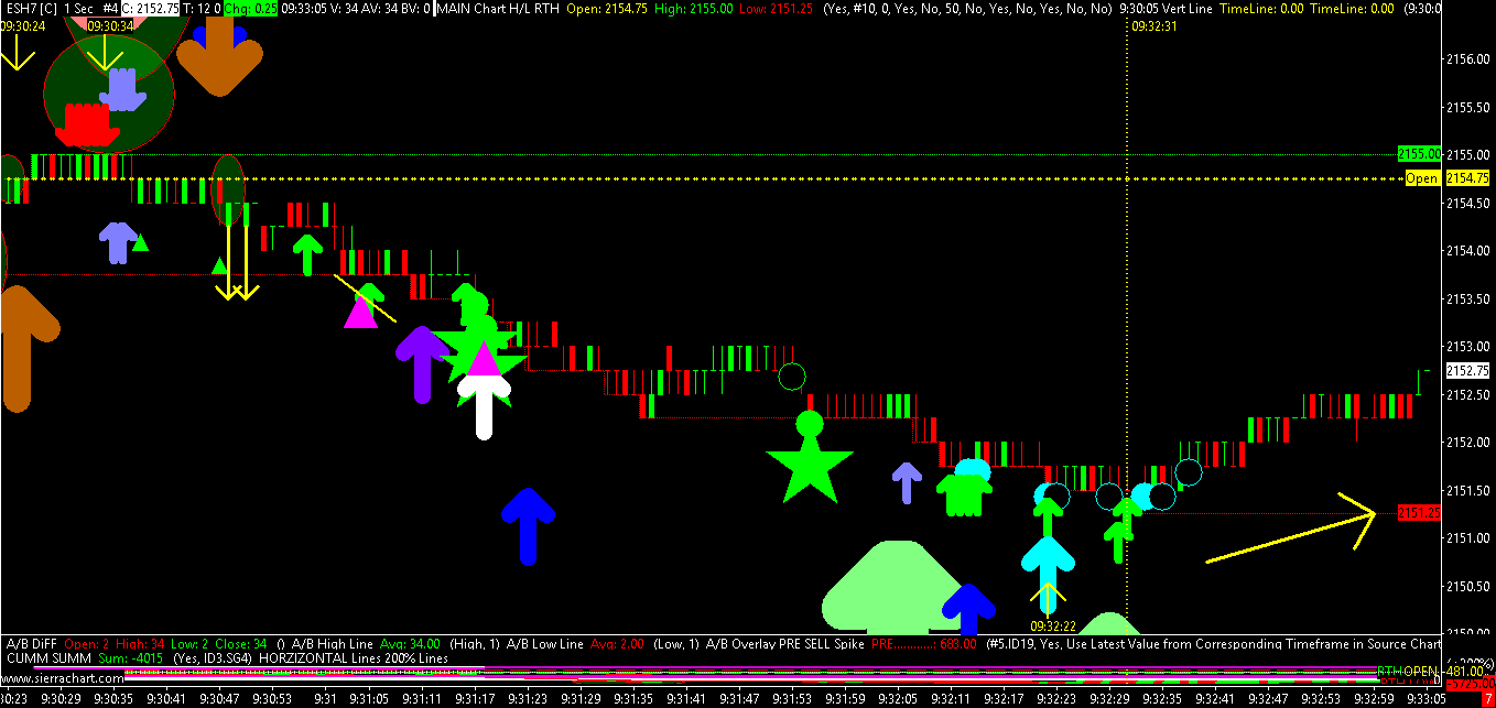 VS 1493 I have a 1 sec ES chart with the Daily OHLC study and it works fine. I have another chart that I do the Study/Price Overlay of that study. The prices only show whole numbers unlike the original 1 tick .25 increments on the original chart. I've tried everything from changing the "SCALE" to "Independent" from "Automatic". No change. I changed every combination on the inputs. All are "No" except for "Match Source bars to destination bars" which is "YES",(I even changed that) and No change. I changed the "Value Format" from "Inherit" to .01, and it keeps going back to "Inherit" after apply. This is a TICK chart but that shouldn't matter bc its a separate study based on the ES, so the increments should be the same. ????? |