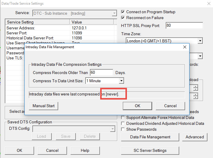 The compression does not automatically run. It must be manually started and done a time where you can leave Sierra Chart running with no needed interaction for an extended time.