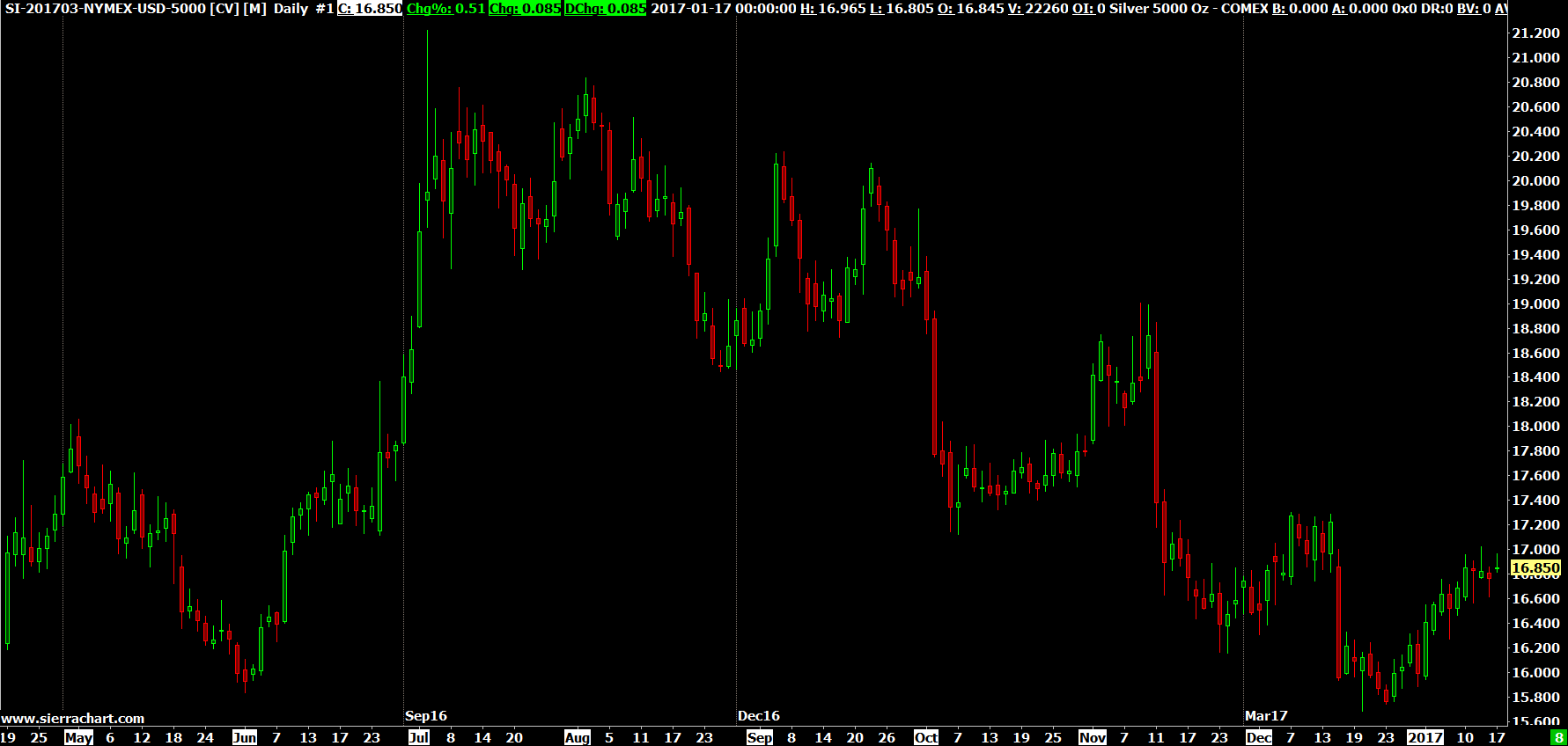 Continuous SI-201703-NYMEX-USD-5000 contract has missing days on daily but not on intraday