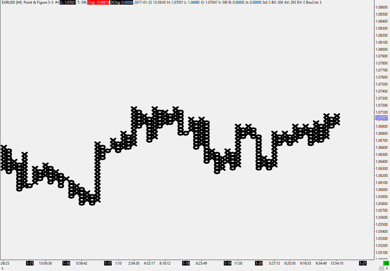 You first need to read the documentation for the Bar Period Type >> Point and Figure Bar here: Chart Settings: Point and Figure Bar (Intraday Charts) (Chart >> Chart Settings >> Bar Period >> Intraday Chart Bar Period Settings >> Bar Period) Sierra Chart Support - Engineering Level Your definitive source for support. Other responses are from users. Try to keep your questions brief and to the point. Be aware of support policy: https://www.sierrachart.com/index.php?l=PostingInformation.php#GeneralInformation For the most reliable, advanced, and zero cost futures order routing, *change* to the Teton service: Sierra Chart Teton Futures Order Routing |