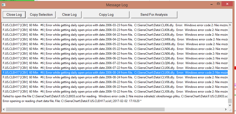 We first want you to follow through the instructions here for this: http://www.sierrachart.com/index.php?page=doc/ContinuousFuturesContractCharts.html#ReDownloading Sierra Chart Support - Engineering Level Your definitive source for support. Other responses are from users. Try to keep your questions brief and to the point. Be aware of support policy: https://www.sierrachart.com/index.php?l=PostingInformation.php#GeneralInformation For the most reliable, advanced, and zero cost futures order routing, *change* to the Teton service: Sierra Chart Teton Futures Order Routing |