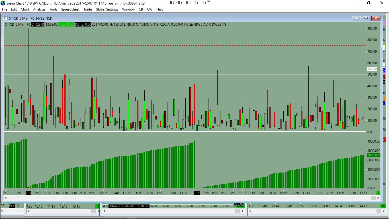 To use TD Ameritrade, follow the instructions here: https://www.sierrachart.com/index.php?page=doc/AmeriTrade.php#SetupInstructions they get their data from the exchange and its accurate. This is not correct. Market statistics data is not provided by the exchange. There is no exchange in the world we are aware of that provides market statistics data including the NYSE.Your data for NYSE $TICK is not accurate. It is fine for you to conclude this, but we think this is incorrect. Based on recent analysis it is clear that these other market statistics put out by other sources are actually less than accurate or misleading. Refer to:Sierra Chart Market Statistics: Recent Analysis Sierra Chart Market Statistics: Market Statistics Calculations Compared to Other Data Services Sierra Chart Support - Engineering Level Your definitive source for support. Other responses are from users. Try to keep your questions brief and to the point. Be aware of support policy: https://www.sierrachart.com/index.php?l=PostingInformation.php#GeneralInformation For the most reliable, advanced, and zero cost futures order routing, *change* to the Teton service: Sierra Chart Teton Futures Order Routing Date Time Of Last Edit: 2017-02-04 10:32:56