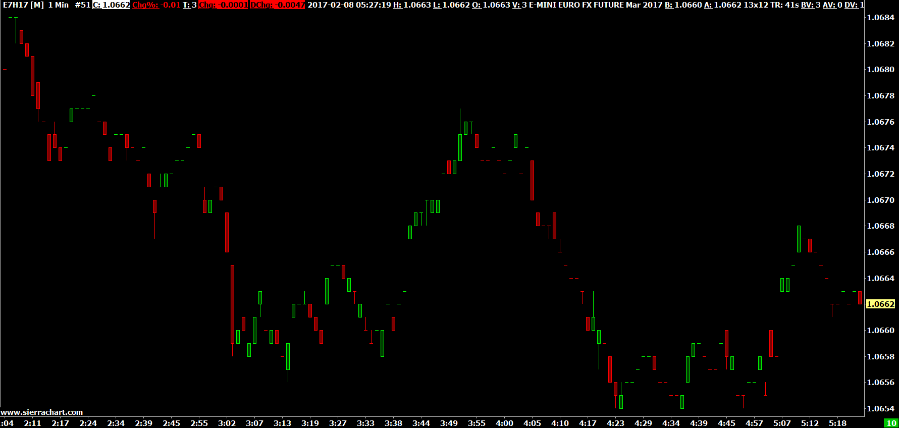 What do you mean by TDAM? According to the specifications for this contract here: http://www.cmegroup.com/trading/fx/g10/e-mini-euro-fx_contract_specifications.html For the outright futures, the smallest increment is .0001 So what you are seeing is correct in Sierra Chart. Sierra Chart Support - Engineering Level Your definitive source for support. Other responses are from users. Try to keep your questions brief and to the point. Be aware of support policy: https://www.sierrachart.com/index.php?l=PostingInformation.php#GeneralInformation For the most reliable, advanced, and zero cost futures order routing, *change* to the Teton service: Sierra Chart Teton Futures Order Routing |