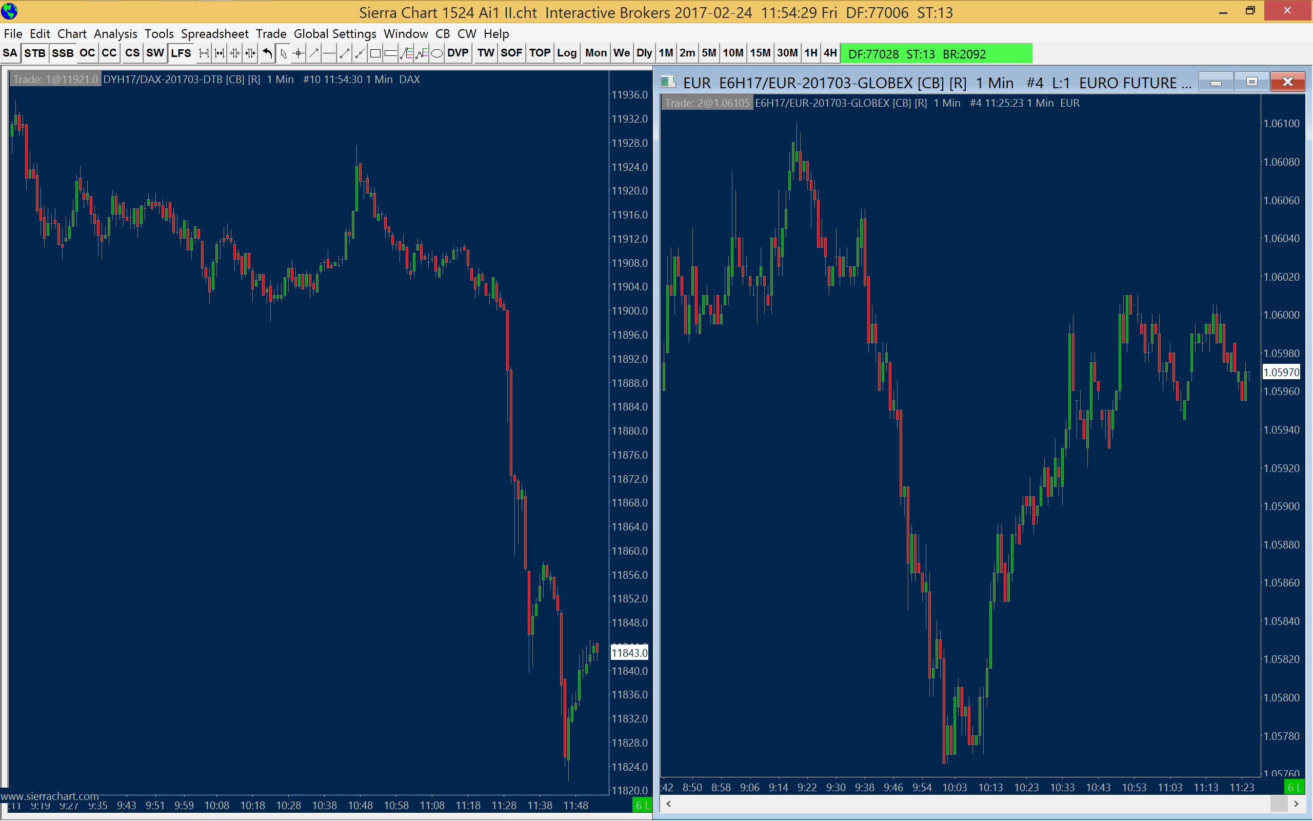 Both Sierra instances now running 1522 version. The enclosed file "Sierra Support Test Chartbook" is intraday before closing and restarting Sierra. The enclosed file "Sierra Support Test Chartbook II" is after the restart. |