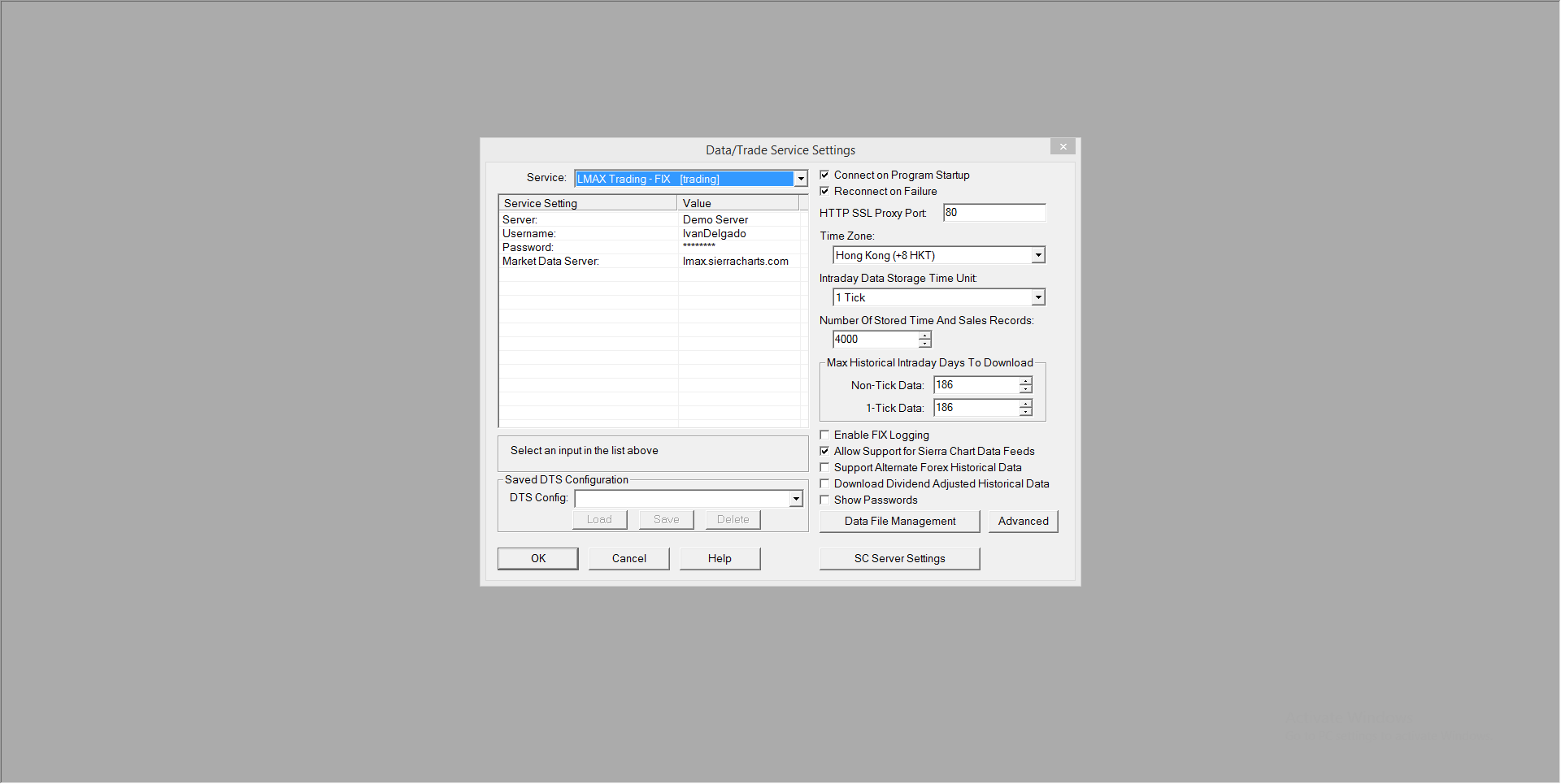 Hi customer service, I have opened a demo account with LMAX. Their message this morning was "Your demo has been enabled to trade via SierraChart platform. Now you simply need to use your demo account user name and password." I have tried to connect via LMAX Trading FIX demo server with the credentials given but no success. See attachment. When I try LMAX Demo Trading DTC , no option to introduce user or password is enabled. I also attach the message log. Looking forward to your reply to fix the issue. |