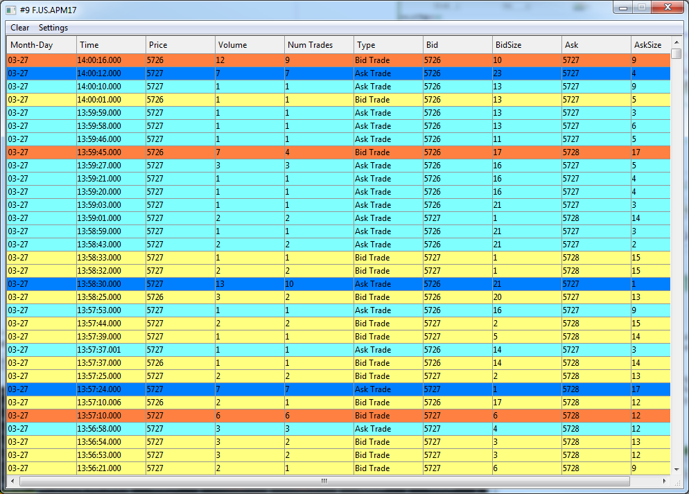 Hello Support I trade the SPI200 and I use the combine trades feature to see possible larger size trades. I use "combine trades with same time and price" I have attached a screen shot of some of todays time and sales Is it possible to use the larger combined volume as an input to other indicators? I wanted to have a cumulative delta or ask/bid volume difference bars that only use volume data that is say larger than 5 using the combined trades higher values I have tried the volume filter under chart settings but this only uses the normal volume prints from what I can see Thanks Jonathan |