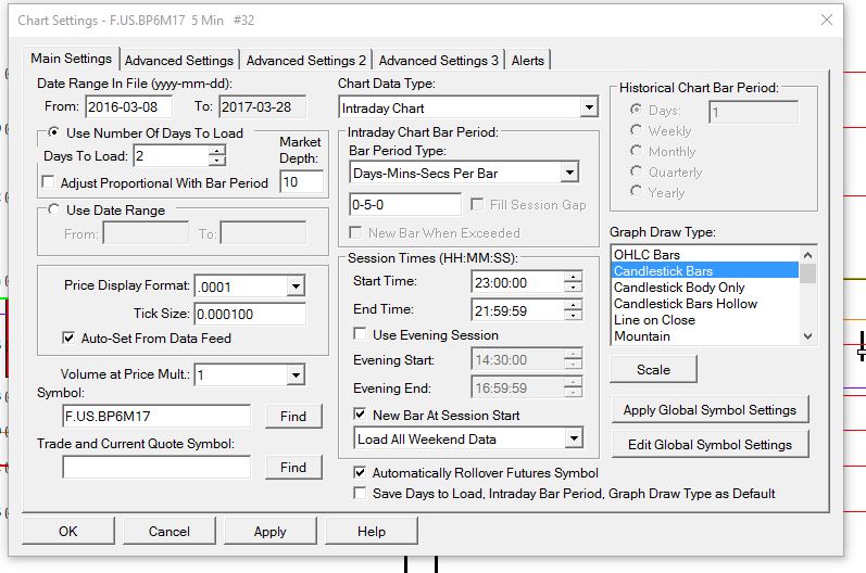 i have noticed the following Out of Order timestamps. which is impacting an auto trade system. F.US.BP6M17 1 Min #32 | Out of order timestamps detected. Chart tool drawings and some chart studies may not function properly. Prior Date Time: 2017-03-27 23:00:00. Next Bar Date Time: 2017-03-27 21:59:00. Filename: F.US.BP6M17.scid | 2017-03-28 09:07:10 F.US.BP6M17 5 Min #32 | Out of order timestamps detected. Chart tool drawings and some chart studies may not function properly. Prior Date Time: 2017-03-27 23:00:00. Next Bar Date Time: 2017-03-27 21:55:00. Filename: F.US.BP6M17.scid | 2017-03-28 09:07:38 setting in screen shot can you advise? |