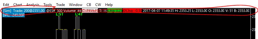 Refer to: http://www.sierrachart.com/index.php?page=doc/GlobalSettingsMenu.html#CustomizeChartHeader Sierra Chart Support - Engineering Level Your definitive source for support. Other responses are from users. Try to keep your questions brief and to the point. Be aware of support policy: https://www.sierrachart.com/index.php?l=PostingInformation.php#GeneralInformation For the most reliable, advanced, and zero cost futures order routing, *change* to the Teton service: Sierra Chart Teton Futures Order Routing |