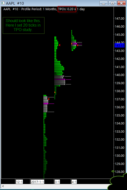 When flipping through different trading instruments TPO charts are not scaling automatically in a acceptable way. Setting Letter/Block Price Increment in Ticks to 0 does not help. E.g. I look a stock chart of Ford(Last traded price 11.23) and Apple(Last traded price 143.34). When TPO chart is linked via quote board and symbol is changed TPO is not scaling nicely. I have then to manually set Letter/Block Price Increment in Ticks to an appropriate size. This is cumbersome. It should be possible to have nice TPO charts when changing trading instrument.