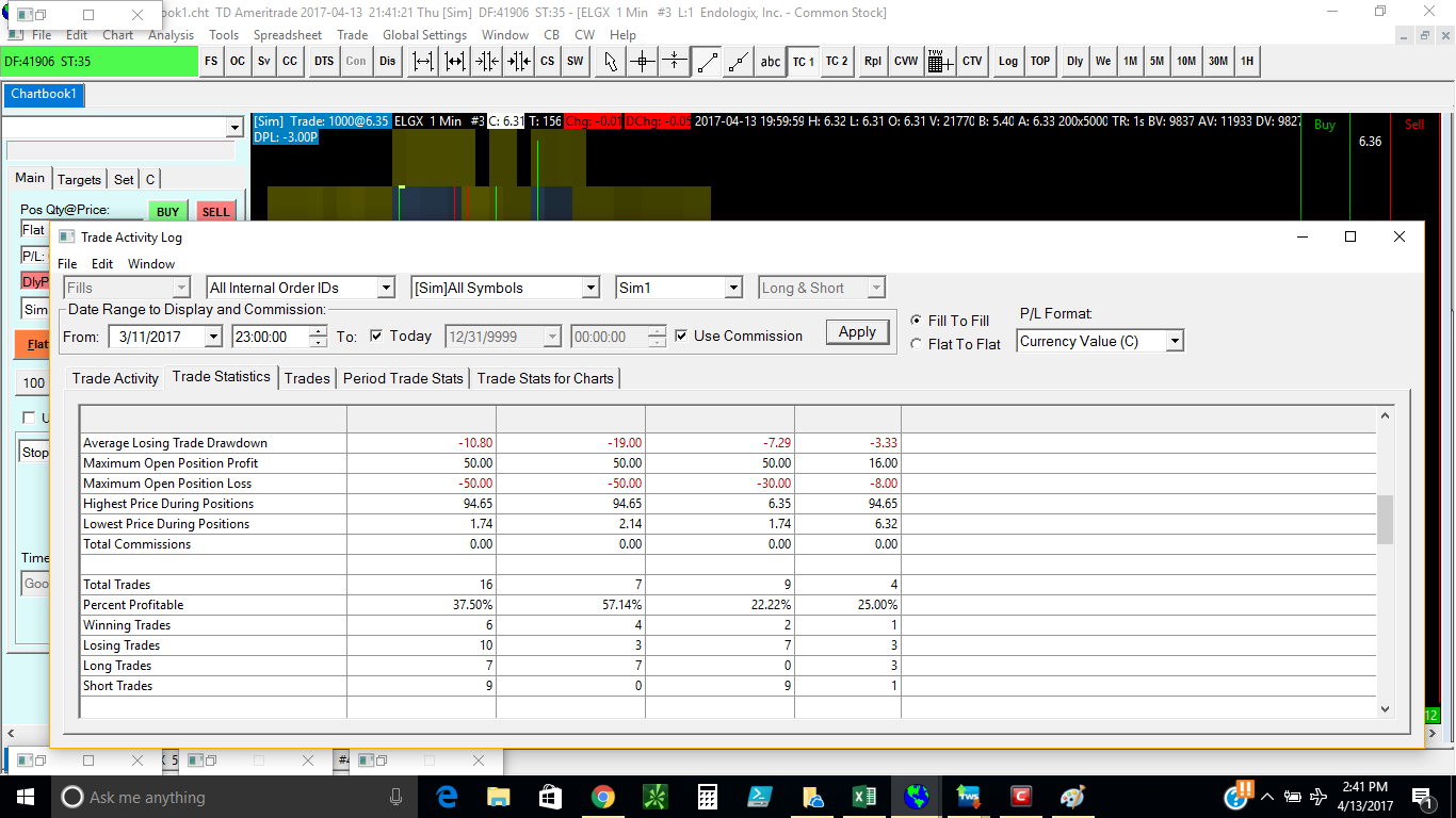 In the case of stock shares where the quantities are much higher than futures, you need to take this into consideration when determining the commission value. For example, you may want to set a commission of .01 which would apply per share. So a trade of 1000 shares would have a commission of 10. If there are any changes to the commission value in the Global Symbol Settings window, then to see these changes applied to the Profit/Loss calculations, select Edit >> Refresh Log on the Trade Activity Log menu when the Trade Activity tab is selected. Sierra Chart Support - Engineering Level Your definitive source for support. Other responses are from users. Try to keep your questions brief and to the point. Be aware of support policy: https://www.sierrachart.com/index.php?l=PostingInformation.php#GeneralInformation For the most reliable, advanced, and zero cost futures order routing, *change* to the Teton service: Sierra Chart Teton Futures Order Routing |