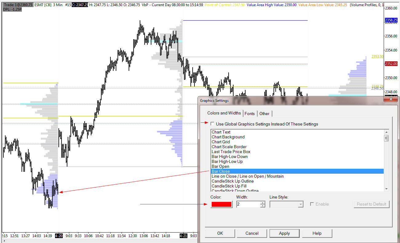 Hi, I want the close to be a different color on my HLC bars. When I change, it does change the thickness but not the color. (In the snapshot it is red) Even If choose the Global settings I can not get it to work. Is this available? Am I doing something wrong? Do I appreciate Sierra? I can only answer the last question, the answer is yes. Thanks as always |