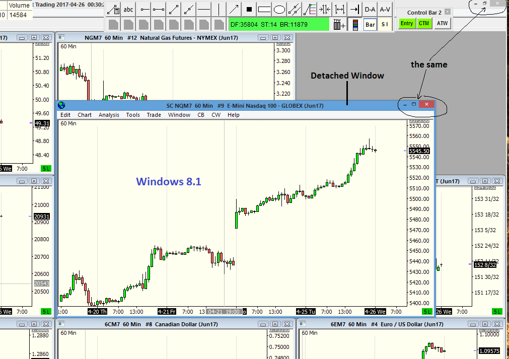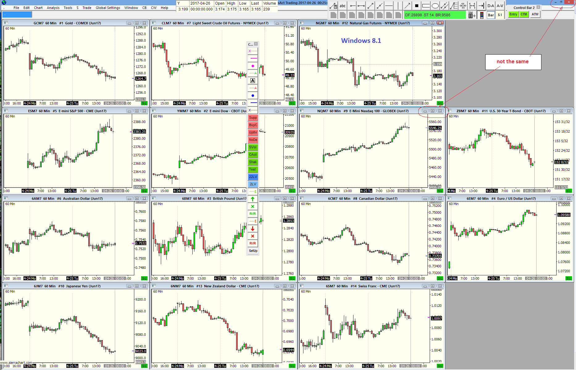 I had a Windows 7 on my old computer, and the Title Bar and Minimize, Maximize, Remove Buttons are the same type in the Main Window and Chart Windows (it's okey). See pic SC-W7. I purchused a new computer with Windows 8.1, and the Title Bar and Minimize, Maximize, Remove Buttons are not the same type in the Main Window and Chart Windows. See pic SC-W8.1. Also cann't be customized the Title Bar of the Chart Windows from a level of operating system. Detached charts have the same type of Title Bar and Minimize, Maximize, Remove Buttons like Main Window (it's okey). See SC-W8.1 detached. Is possible to fix this issues? Date Time Of Last Edit: 2017-04-25 23:33:28