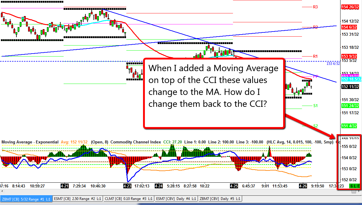 You will need to make sure that the Commodity Channel Index is listed before the Exponential Moving Average. Refer to: Chart Studies: Study Display Order Sierra Chart Support - Engineering Level Your definitive source for support. Other responses are from users. Try to keep your questions brief and to the point. Be aware of support policy: https://www.sierrachart.com/index.php?l=PostingInformation.php#GeneralInformation For the most reliable, advanced, and zero cost futures order routing, *change* to the Teton service: Sierra Chart Teton Futures Order Routing |